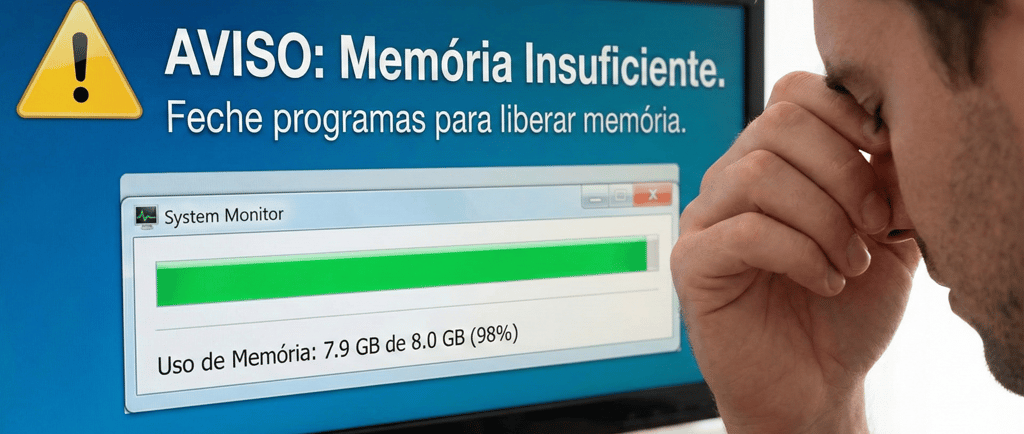 Na prática: Ao ligar um computador com 8GB de RAM, apenas o sistema e o antivírus já consomem cerca de 50% da memória disponível. Sobra muito pouco para o trabalho real.