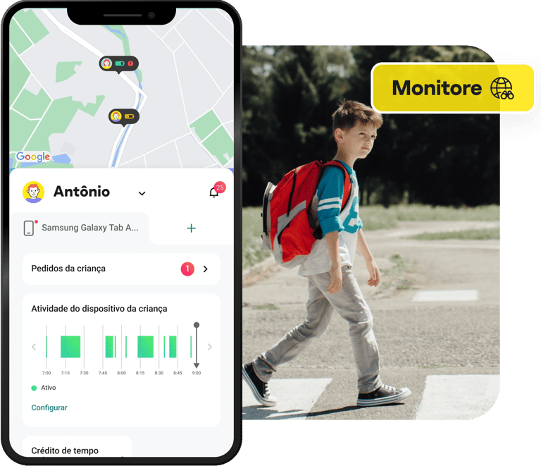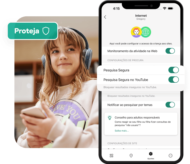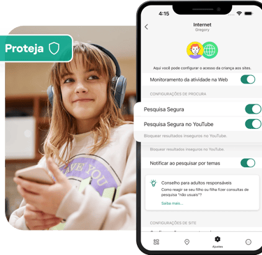 Filtro de Conteúdo: Bloqueia automaticamente sites e apps impróprios. Paz de espírito garantida!