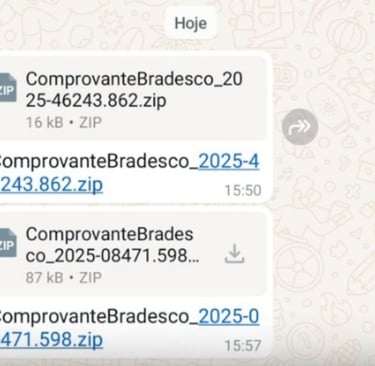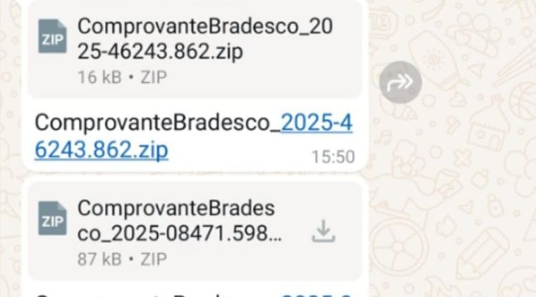 Uma nova variante do Sorvepotel utiliza a mesma abordagem de mensagens falsas, mas em vez de um link, ela envia um arquivo comprimido (como um .zip). O nome do arquivo pode ser algo atrativo, como "Fotos_do_aniversario.zip" ou "Documento_importante.zip".
